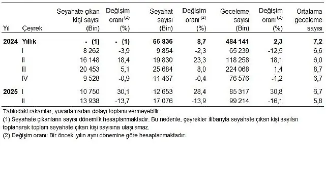 Hanehalkı Yurt İçi Turizm, II. Çeyrek: Nisan-Haziran 2025