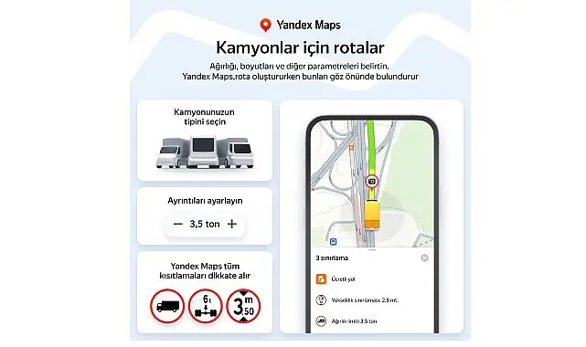 Yandex Maps, Kamyonlara Özel Navigasyon Özelliğini Türkiye’de Kullanıma Sundu